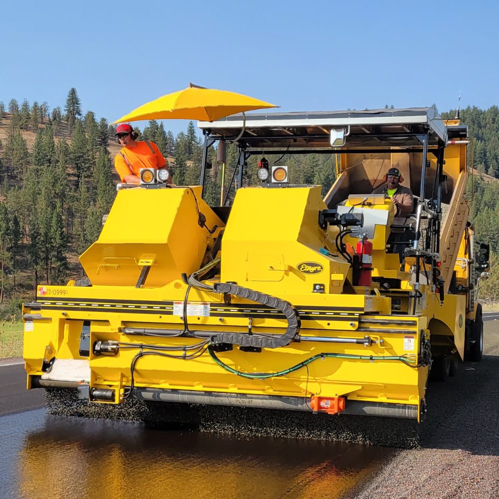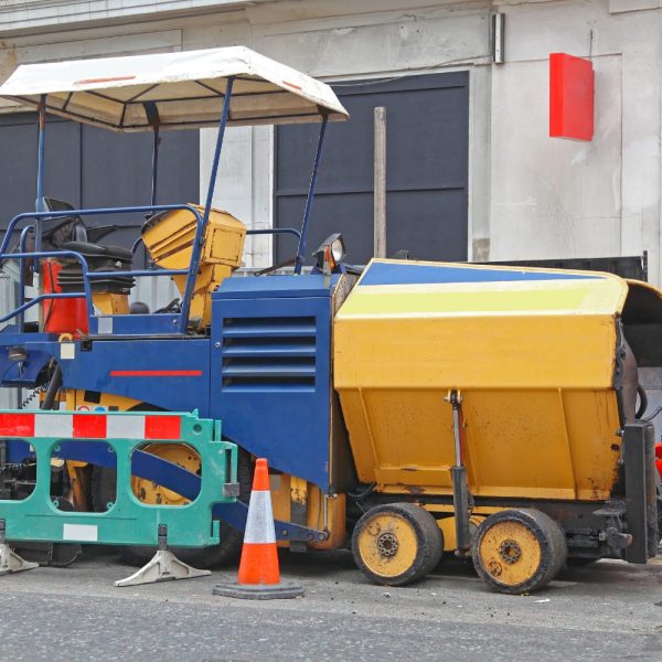 Construction machinery used for laying asphalt and concrete surfaces in roads, highways, and airstrips.